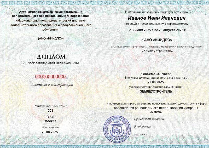 Будущие специалисты готовятся разрабатывать землеустроительные проекты и организовывать землеустроительные работы Во время обучения слушатели изучают лекции и вебинары, выполняют практические задания и проходят тестирование по каждой теме и дисциплине. Выпускники владеют методами землеустроительных работ, знают основы законодательства в области земельно-имущественных отношений, умеют проводить оценку стоимости недвижимости. После сдачи итогового экзамена выдается диплом о дополнительном профессиональном образовании и присваивается квалификация «Землеустроитель».
