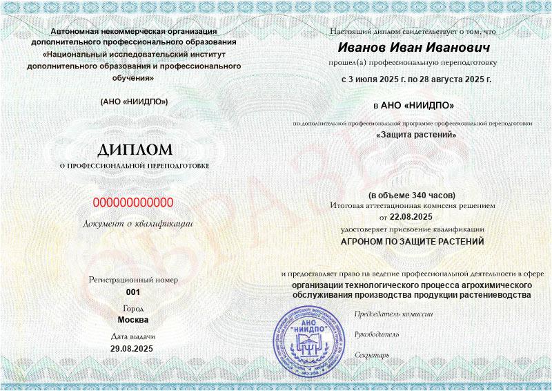 Да, документы оформляются на бланках с защитой от подделок, заполняются на русском языке, в них ставится печать АНО «НИИДПО».