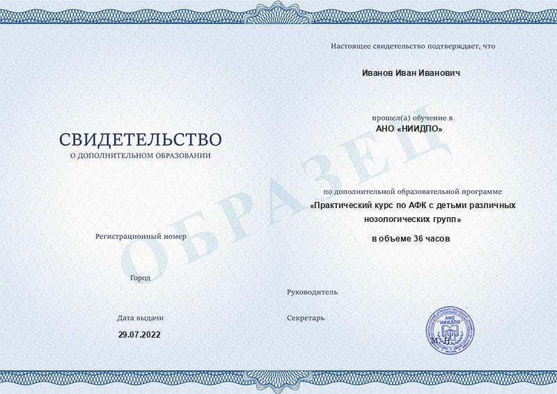 Практический курс по АФК с детьми различных нозологических групп (36ч)