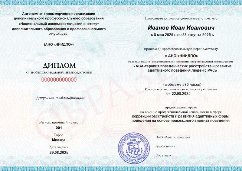 Обзор программы профессиональной переподготовки «АВА-терапия поведенческих расстройств и развитие адаптивного поведения людей с РАС»