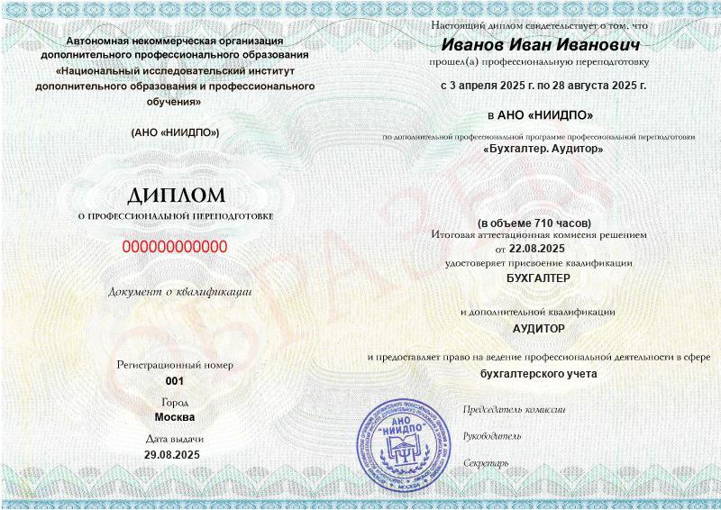 - Получите официальный диплом с присвоением сразу двух квалификаций: бухгалтер и аудитор.
