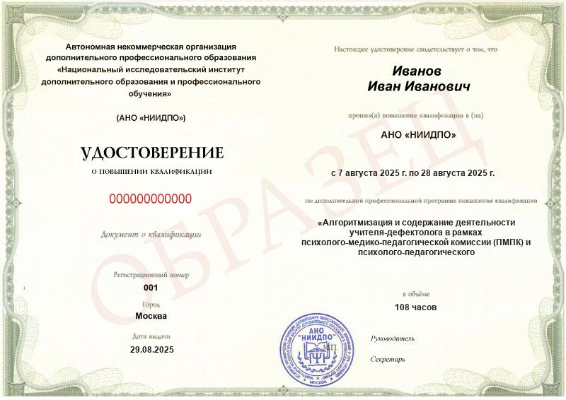 Обзор программы повышения квалификации «Алгоритмизация и содержание деятельности учителя-дефектолога в рамках психолого-медико-педагогической комиссии (ПМПК) и психолого-педагогического консилиума (ППк)»
