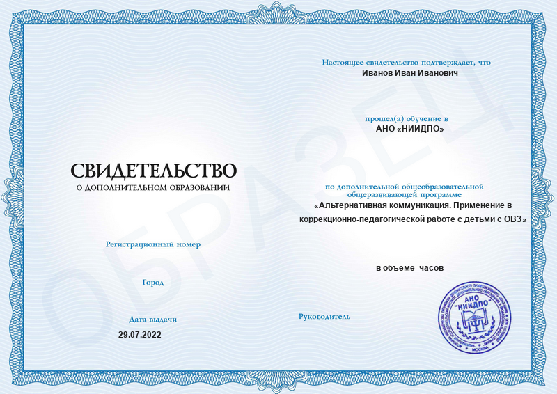 Нет, это не предусмотрено законом. Форма обучения (заочная с применением дистанционных образовательных технологий) прописывается только в вашем договоре с АНО «НИИДПО».