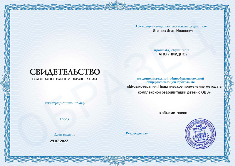 Свидетельство о дополнительном образовании. Вышлем его на вашу электронную почту в течение 14 рабочих дней после окончания обучения.