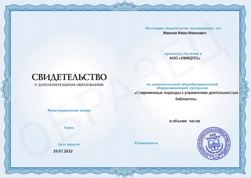 Современные подходы к управлению деятельностью библиотек (144ч)