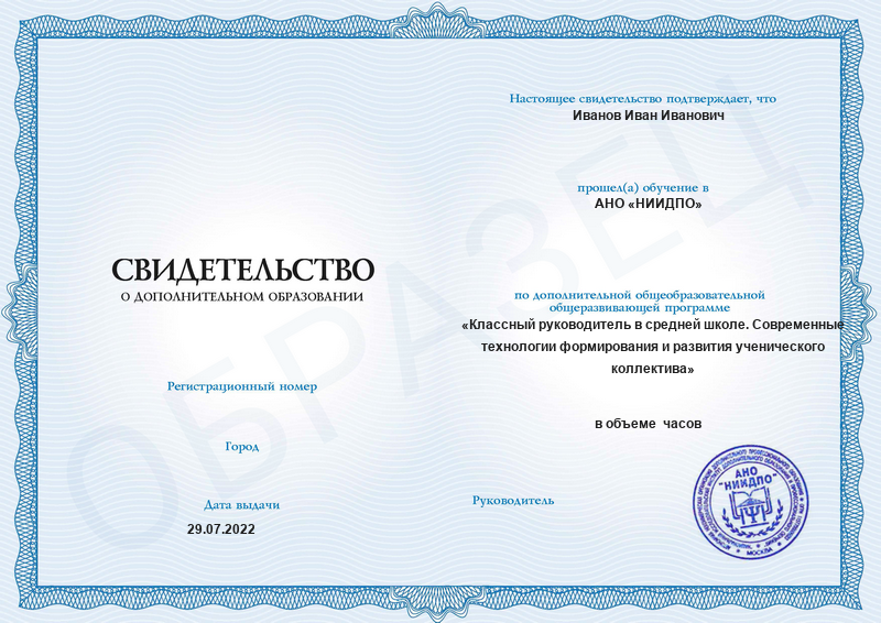 Классный руководитель в средней школе. Современные технологии формирования и развития ученического коллектива (144ч)