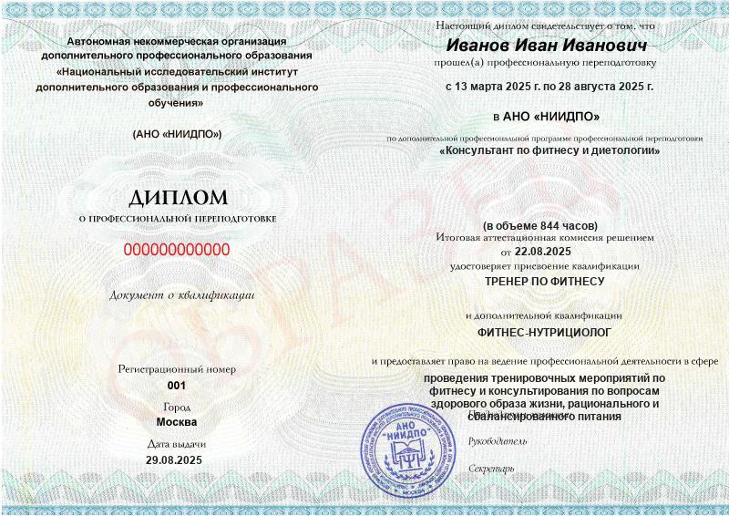 Обзор программы профессиональной переподготовки «Консультант по фитнесу и диетологии» с присвоением квалификации «Тренер по фитнесу» с дополнительной квалификацией «Фитнес-нутрициолог»