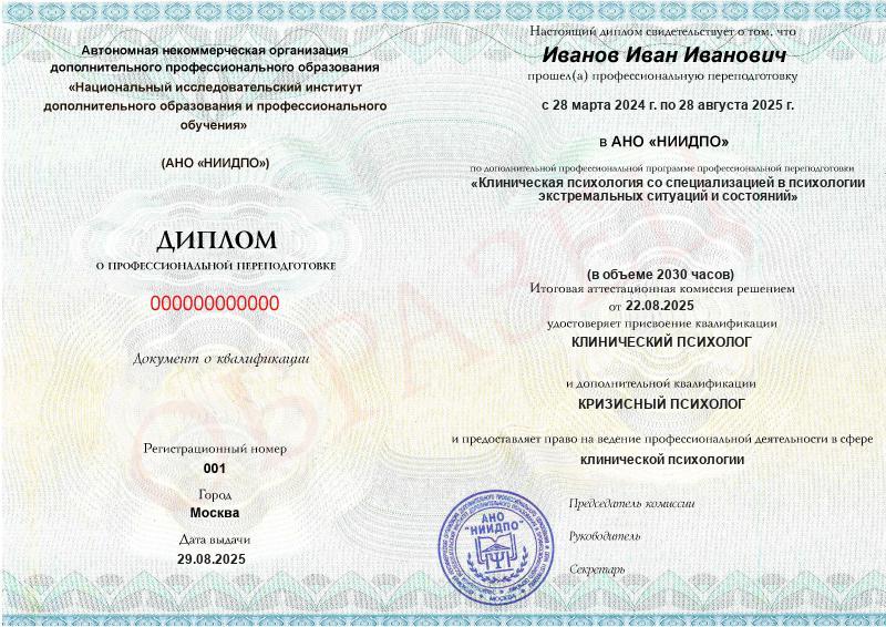 2 квалификации — «Клинический психолог» и «Кризисный психолог».