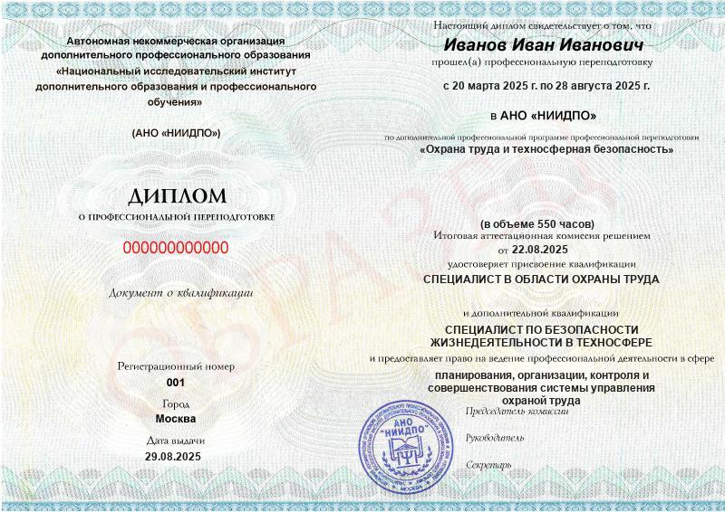 - 2 квалификации: Специалист в области охраны труда + Специалист по безопасности жизнедеятельности в техносфере