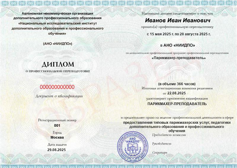 Парикмахер-преподаватель (366ч)