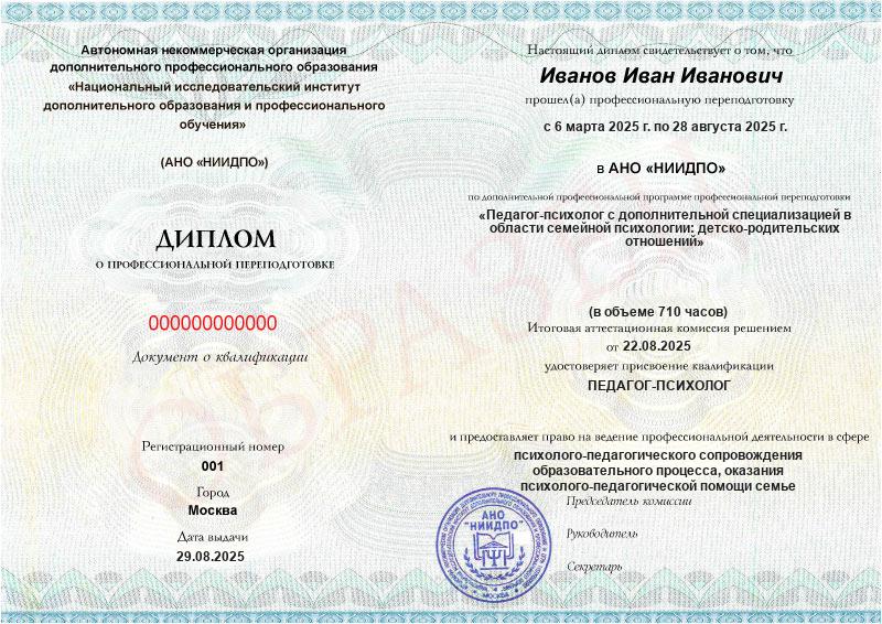 Педагог-психолог с дополнительной специализацией в области семейной психологии: детско-родительских отношений (710ч)