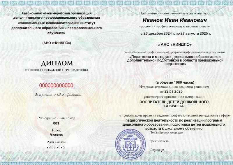 Студент, желающий поступить в АНО «НИИДПО», должен предоставить справку из образовательной организации. Независимо от срока окончания обучения по программе дополнительного образования, диплом о профпереподготовке выдаётся только после предъявления документа о получении среднего профессионального или высшего образования.
