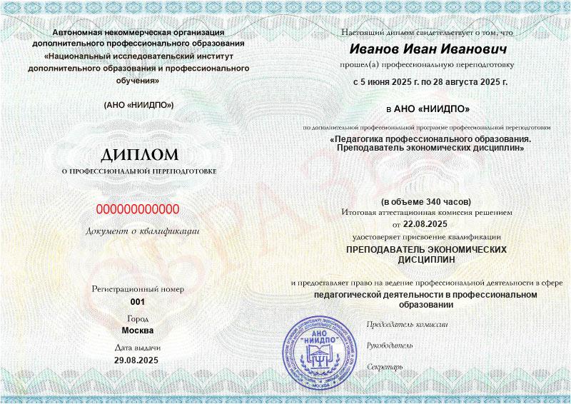 Обзор программы профессиональной переподготовки «Педагогика профессионального образования. Преподаватель экономических дисциплин» с присвоением квалификации «Преподаватель экономических дисциплин»