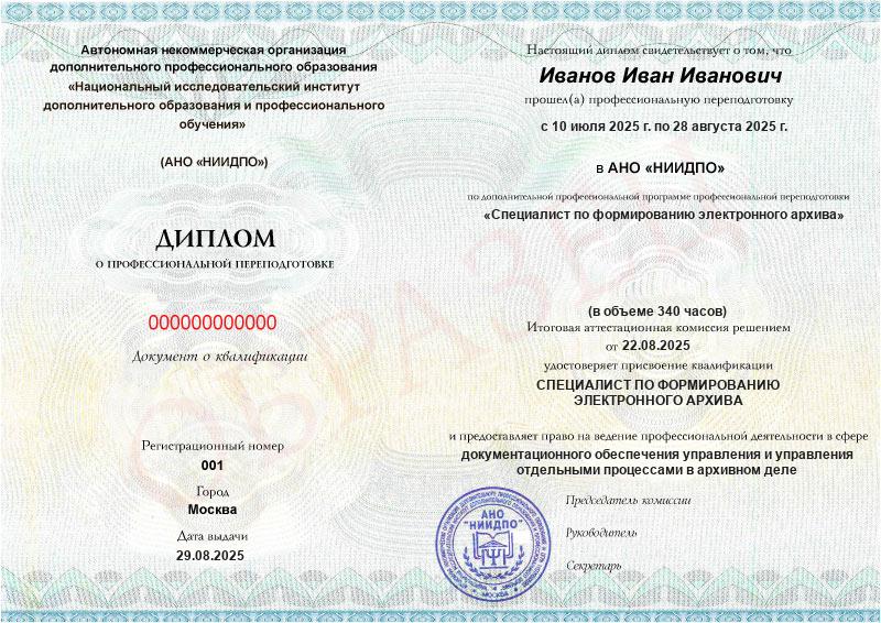 Обзор программы профессиональной переподготовки «Специалист по формированию электронного архива» с присвоением квалификации «Специалист по формированию электронного архива»