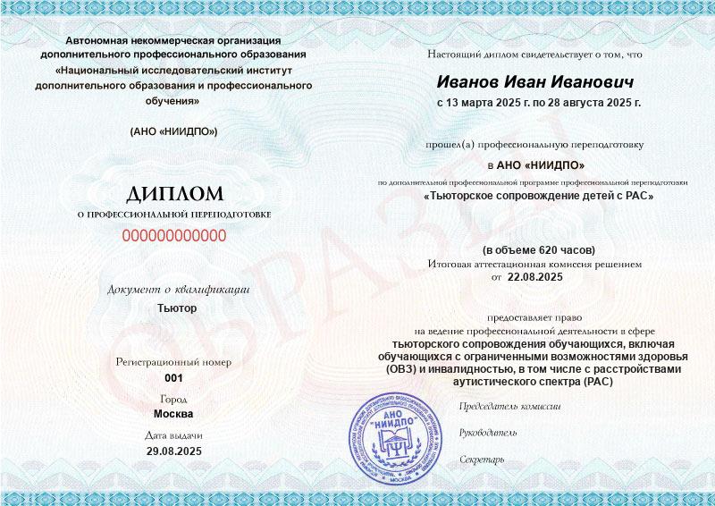 Студент, желающий поступить в АНО «НИИДПО», должен предоставить справку из образовательной организации. Независимо от срока окончания обучения по программе дополнительного образования, диплом о профпереподготовке выдаётся только после предъявления документа о получении среднего профессионального или высшего образования.