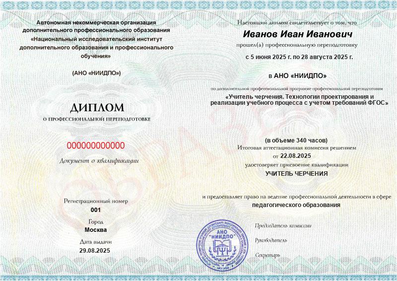 Обзор программы профессиональной переподготовки «Учитель черчения. Технологии проектирования и реализации учебного процесса с учетом требований ФГОС» с присвоением квалификации «учитель черчения»