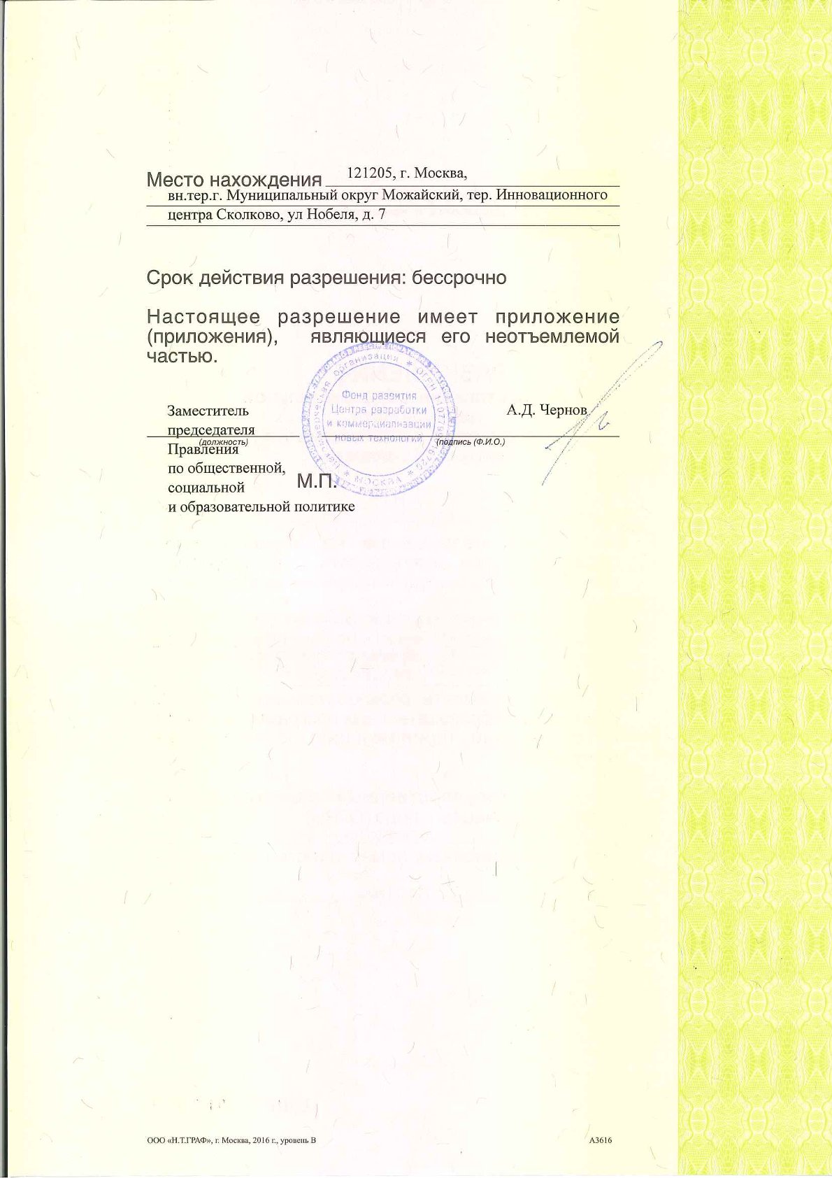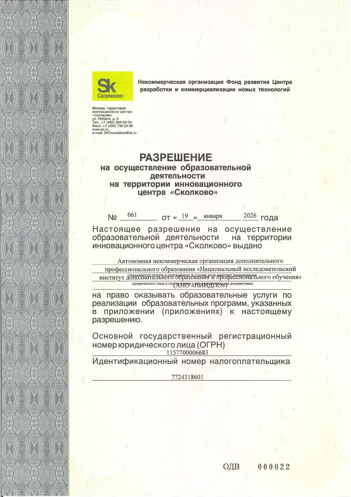 Разрешение на осуществление образовательной деятельности от «Сколково»