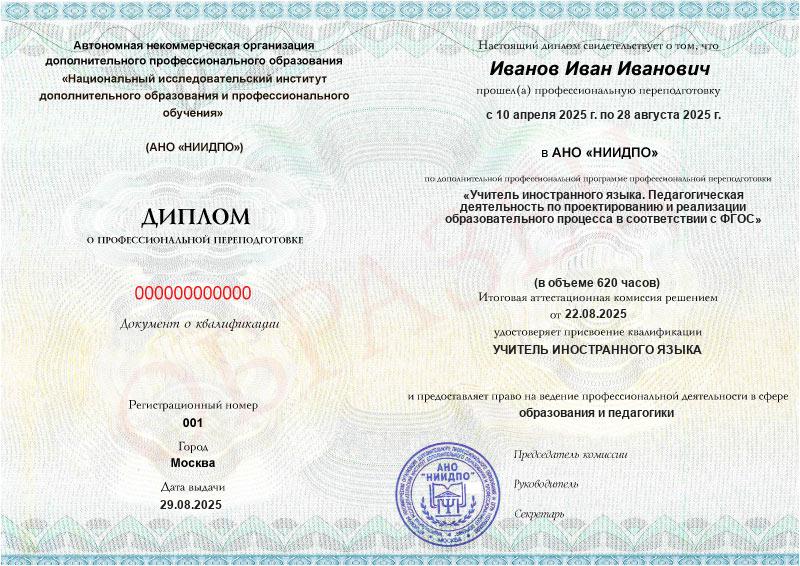 Да, документы оформляются на бланках с защитой от подделок, заполняются на русском языке, в них ставится печать АНО «НИИДПО».