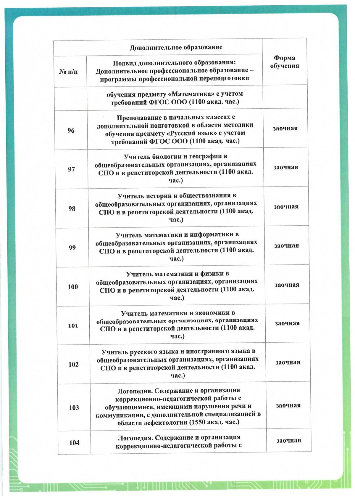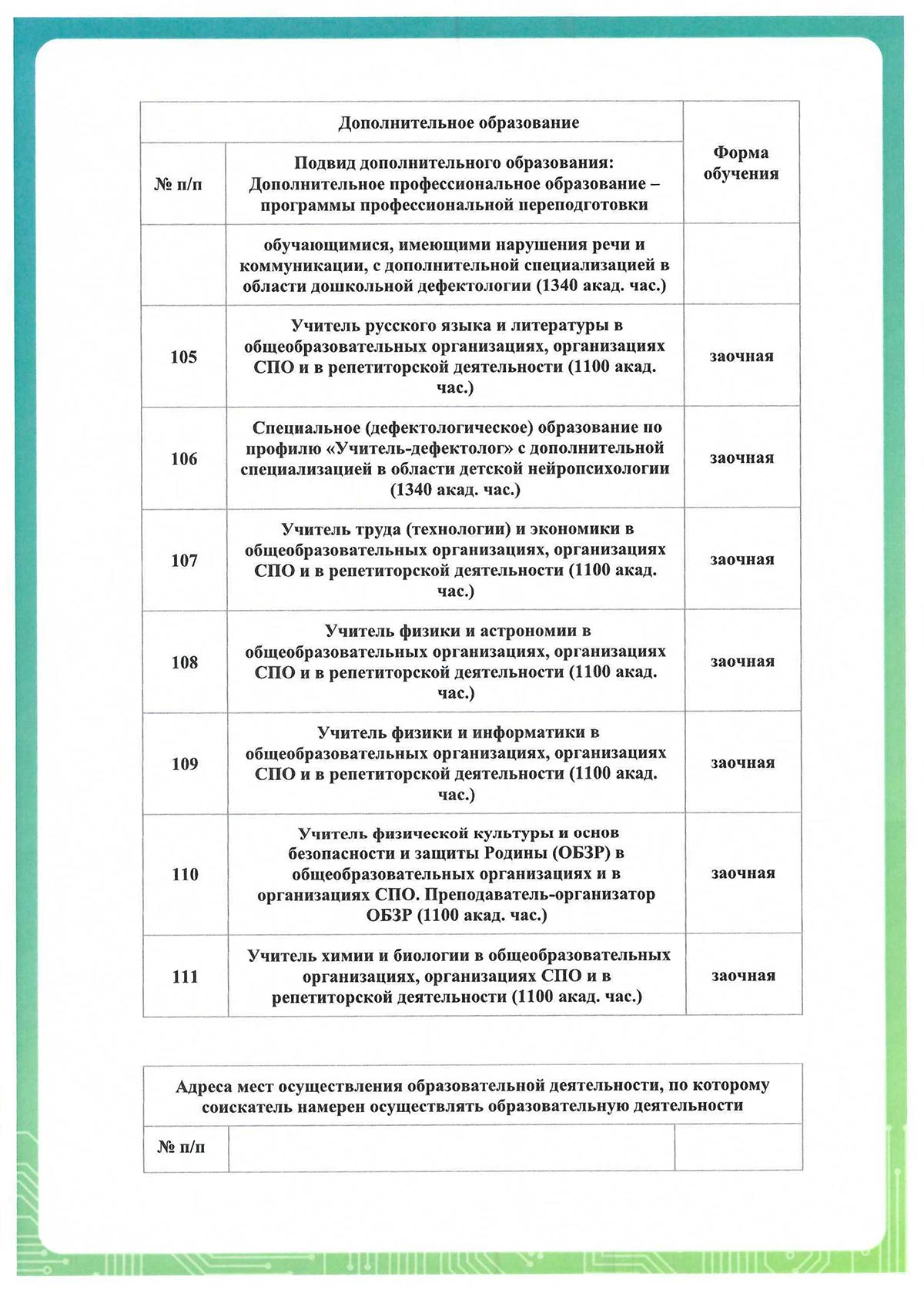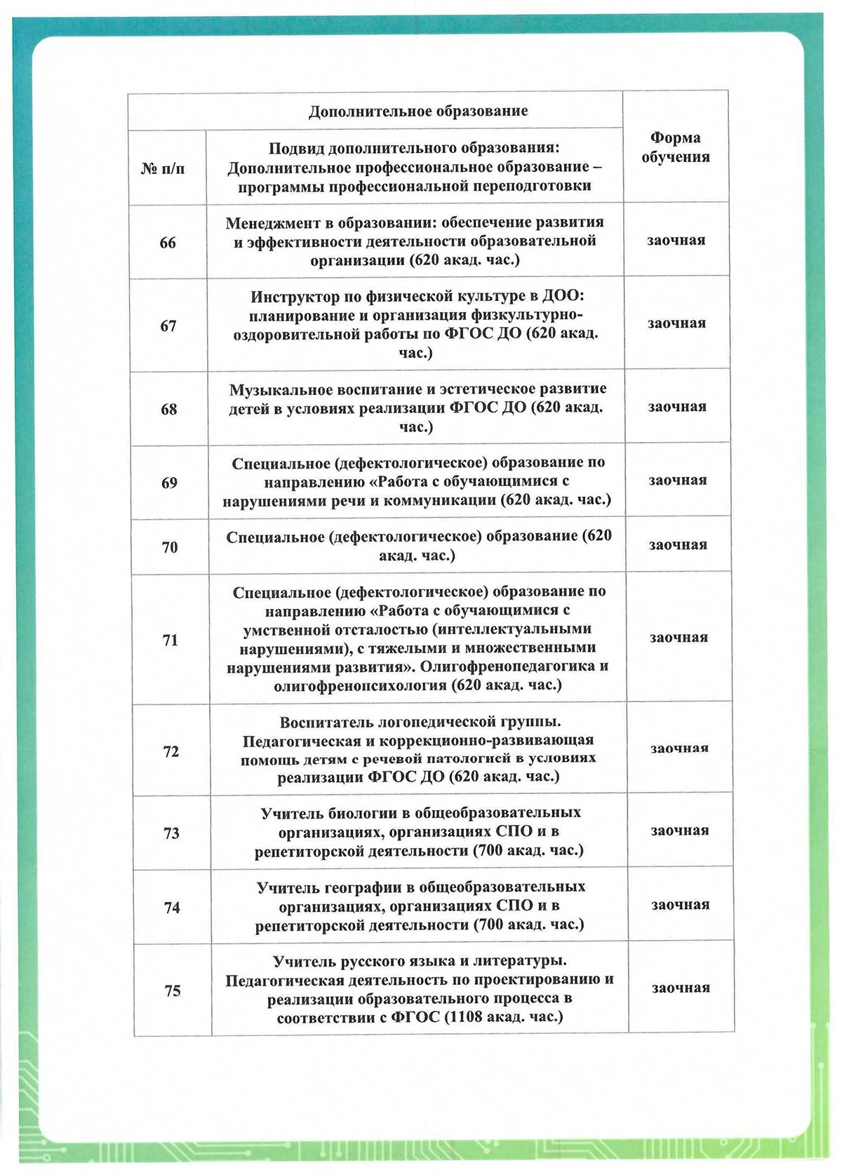 * Форма обучения – заочная. Образовательные программы реализуются с применением исключительно электронного обучения, дистанционных образовательных технологий