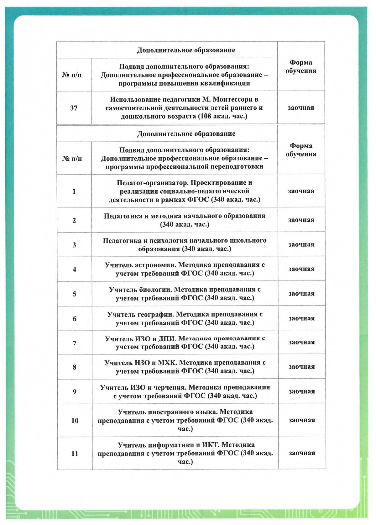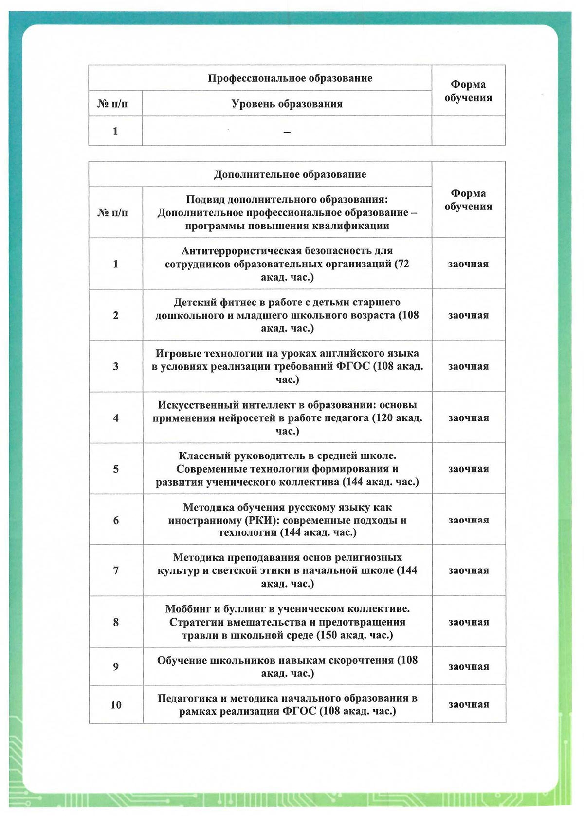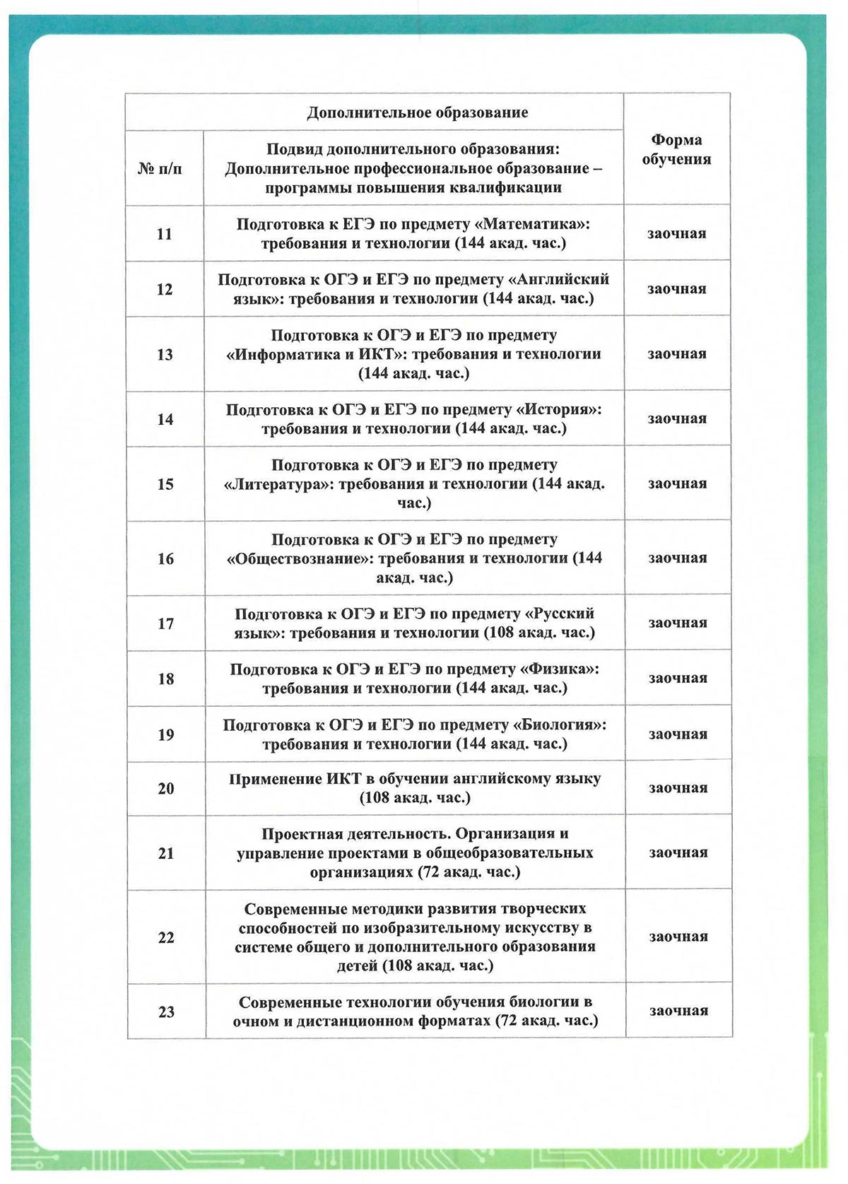 - для повышения квалификации минимум 16 ч.