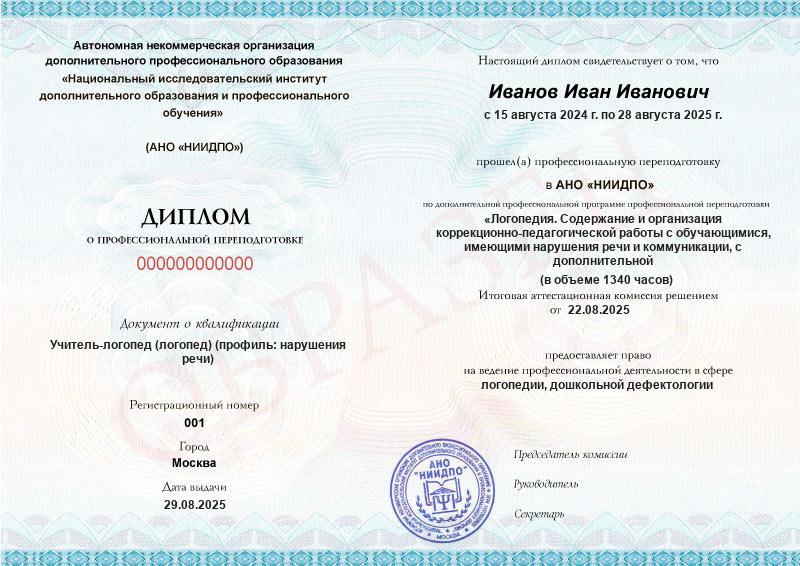 Да, документы оформляются на бланках с защитой от подделок, заполняются на русском языке, в них ставится печать АНО «НИИДПО».