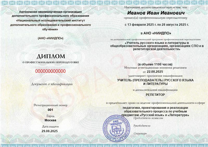 • 2 квалификации: Учитель (преподаватель) русского языка и литературы + Репетитор