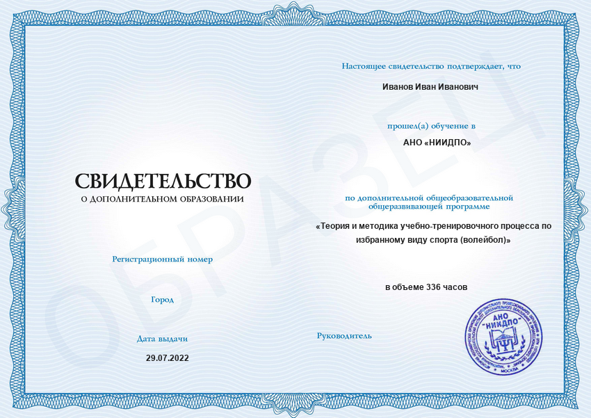 По результатам обучения получил то что хотел. Квалификацию тренера по волейболу. Имея небольшой практический опыт получил дополнительную информацию касающуюся систематизации знаний в теории тренировочных процессов, что считаю важным для себя. Материал дан в достаточно краткой и понятной форме, быстро усваивается, а практические задания помогают определить степень усвоения пройденного учебного материала.